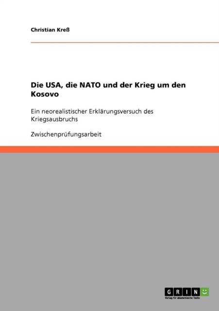 Zwischenprüfungsarbeit aus dem Jahr 2006 im Fachbereich Politik - Internationale Politik - Allgemeines und Theorien, Note: 1,3, Eberhard-Karls-Universität Tübingen (Institut für Politikwissenschaft), Sprache: Deutsch, Abstract: Václav Havel, ehemals tschechischer Staatspräsident, sagte einmal: "If one can say of any war that it is ethical, or that it is being waged for ethical reasons, then it is true of this war". Havel meinte den Krieg um den Kosovo, den die NATO am 24. März 1999 gegen die Bundesrepublik Jugoslawien initiierte. Die internationale Gemeinschaft brachte bei der öffentlichen Begründung für ihre Intervention hauptsächlich ethische und moralische Argumente hervor. Die USA, die sowohl bei der Planung als auch bei der Durchführung der Intervention führend waren, erklärten stets, dass durch das militärische Eingreifen den gewaltsamen Repressionen der Serben gegenüber den Kosovo-Albanern ein Ende bereitet werden sollte. Jedoch stellt sich die Frage, welche nationalen beziehungsweise strategischen Sicherheits- und Machtinteressen hinter der Intervention gestanden haben könnten. Diese Arbeit will eine Antwort auf diese Frage liefern. Mithilfe der populären Theorie des Neorealismus soll untersucht werden, inwieweit die strukturelle Beschaffenheit des internationalen Systems und die daraus resultierenden Implikationen für das Verhalten der Staaten den Ausbruch des Krieges zwischen NATO und Jugoslawien erklären können. Diese Arbeit ist klar strukturiert: Zunächst wird der Konflikt zwischen der internationalen Gemeinschaft und der Bundesrepublik Jugoslawien bis zum Kriegsausbruch ausführlich beschrieben, indem der Konfliktgegenstand, die Konfliktparteien und ihre Positionsdifferenzen, der Konfliktverlauf (angefangen bei den Studentendemonstrationen im Kosovo 1981 bis hin zum Start der NATO-Luftschläge gegen Serbien am 24. März 1999) sowie der Konfliktaustrag näher analysiert werden. Anschließend wird die Theorie des Neorealismus vorgestellt, wie sie von Kenneth