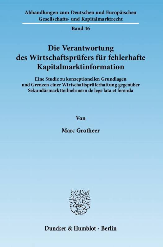 Die Frage nach einer kapitalmarktbezogenen Wirtschaftsprüferhaftung ist nach wie vor offen. Auf europäischer Ebene markiert die "Empfehlung" zur Abschlussprüferhaftungs-Beschränkung von 2008 nur einen Zwischenstand. Die Untersuchung zielt darauf ab, rechtsvergleichend, rechtsökonomisch und rechtssystematisch Vorgaben für die weitere Entwicklung zu ermitteln, die sich an den Zielen des Kapitalmarktrechts orientieren und zugleich dem in Anspruch genommenen Institut der Schadensersatzhaftung gerecht werden. Sie relativiert das Funktionenschutzziel, da auch dem Individualschutz durch privatrechtliche Haftungstatbestände ein Eigenwert zukommt. Dafür maßgebende Grundsätze der Risikozuweisung werden aus den kapitalmarktrechtlichen Rechtsverhältnissen abgeleitet. Im Ergebnis hat eine kapitalmarktbezogene Wirtschaftsprüferhaftung insbesondere Kausalität und Schadensersatzumfang kapitalmarktgerecht zu definieren, während es gegenüber Anlegern bei der Vorsatzschwelle bleiben sollte.