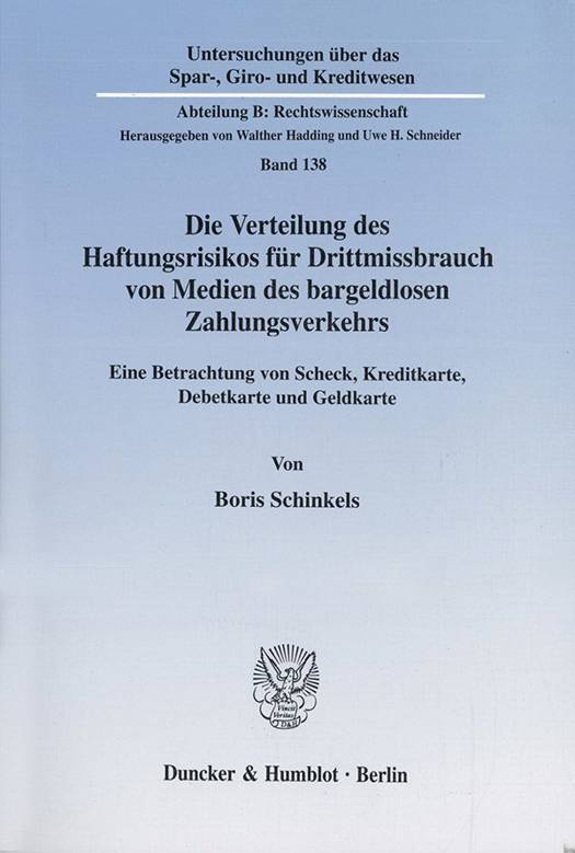 Der Autor beleuchtet erstmals verschiedene Medien des bargeldlosen Zahlungsverkehrs in einer Monographie und zieht daraus Erkenntnisse sowohl über gemeinsame Strukturprinzipien als auch über Besonderheiten einzelner Medien.