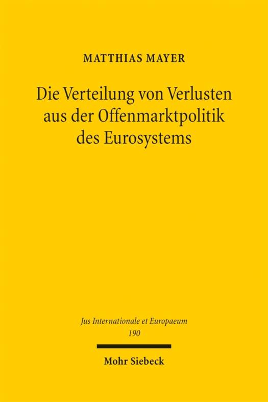 Im Zuge der unkonventionellen Geldpolitik hat das Eurosystem die Zentralbankbilanz als geldpolitisches Instrument eingesetzt. Dadurch sehen sich die Zentralbanken nicht zuletzt auch im Zusammenhang mit den massiven Ankaufen von Staatsanleihen der Euro-Mitgliedstaaten erhohten finanziellen Risiken ausgesetzt. Wenngleich derartige Risiken nicht eintreten mussen, wirft diese Entwicklung angesichts der besonderen Konstruktion des europaischen Zentralbanksystems die auch in den gerichtlichen Verfahren um die OMT und insbesondere das PSPP virulent gewordene, aber bislang nicht beantwortete Frage auf, welche Moglichkeiten das Unionsrecht der EZB eroffnet, um uber die Verteilung von Verlusten zwischen den einzelnen Zentralbanken des Eurosystems zu entscheiden. Matthias Mayer entwickelt vor diesem Hintergrund den unionsrechtlichen Rahmen fur die Verteilung von Verlusten durch die EZB und analysiert, inwiefern die Euro-Mitgliedstaaten unionsrechtlich dazu verpflichtet sind, ihre nationalen Zentralbanken zu rekapitalisieren.