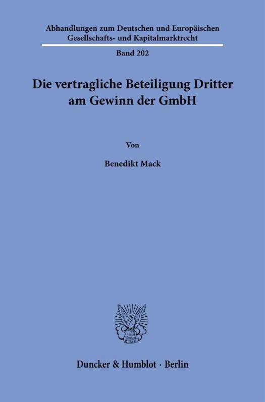Gewinnbeteiligungen Dritter, d. h. von Personen, die nicht zum Kreis der Gesellschafter gehoren, finden in der Praxis vielfach Verwendung, etwa als Bestandteil mezzaniner Finanzierungsinstrumente oder im Rahmen der Mitarbeiterbeteiligung. Verschiedene Vertragstypen, wie das partiarische Darlehen, das Genussrecht oder die stille Gesellschaft, sehen eine Gewinnbeteiligung als Hauptinhalt vor. Das Aktienrecht enthalt mit 221 AktG und 292 Abs. 1 Nr. 2, 293 ff. AktG zwei unterschiedliche Regelungssysteme, die jeweils hohe Anforderungen fur die Begrundung einer vertraglichen Gewinnbeteiligung statuieren. Im Gegensatz dazu fehlt eine entsprechende Bestimmung im GmbH-Recht. Ziel dieser Untersuchung ist es, die verschiedenen Formen der vertraglichen Gewinnbeteiligung im Hinblick auf den Regelungstyp, ihren Einsatzzweck und den Vertragsinhalt zu kategorisieren. Aus den gewonnenen Erkenntnissen wird ein Anforderungsregime fur die Begrundung gewinnbezogener Vertrage durch eine GmbH entwickelt.