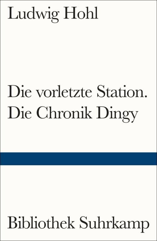Der nachgelassene Bericht Die vorletzte Station, eine Chronik von Ludwig Hohls Aufenthalt im Bergdörfchen Dingy, schildert die reale Begegnung mit Georges Mergault, einer heruntergekommenen ehemaligen Montparnasse-Bekanntschaft. In der haltlosen und kranken Künstler-Existenz Mergaults sieht sich der Erzähler mit einem monströsen Gegenbild seiner Vorstellung vom richtigen Leben konfrontiert und zugleich mit eigenen Abgründen. In einzelnen Episoden, schwankend zwischen Abscheu und unterschwelliger Faszination, entsteht das Porträt einer Figur radikaler Unangepasstheit vor der Kulisse eines skurrilen Dorfalltags. Eine Sozialstudie von zuweilen grotesker Komik.