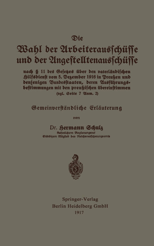 Die Wahl Der Arbeiterausschüsse Und Der Angestelltenausschüsse Nach § 11 Des Gesetzes Über Den Vaterländischen Hilfsdienst Vom 5. Dezember 1916 in Preußen Und Denjenigen Bundesstaaten, Deren Ausführungsbestimmungen Mit Den Preußischen Übereinstimmen (Vgl.