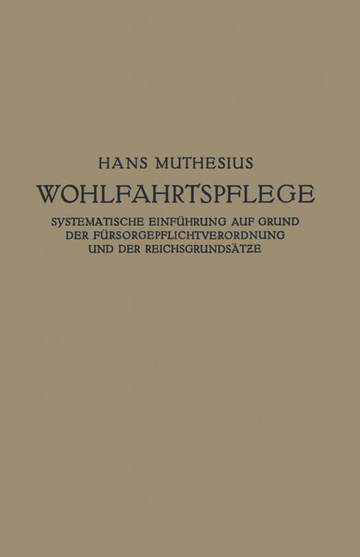 Systematische Einführung Auf Grund Der Fürsorgepflichtverordnung Und Der Reichsgrundsätze
