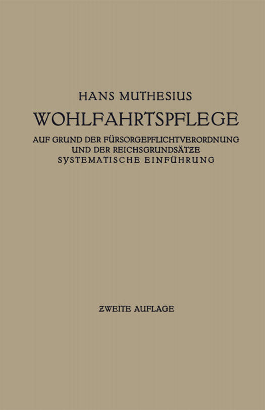 Die Wohlfahrtspflege Auf Grund Der Fürsorgepflichtverordnung Und Der Reichsgrundsätze