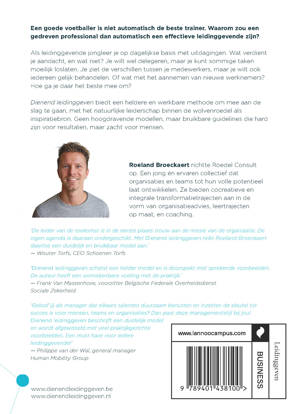 'De leider van de toekomst is in de eerste plaats trouw aan de missie van de organisatie. De eigen agenda is daaraan ondergeschikt. Met Dienend leidinggeven reikt Roeland Broeckaert daartoe een duidelijk en bruikbaar model aan.' - Wouter Torfs, CEO Schoenen Torfs 'Dienend leidinggeven schetst een helder model en is doorspekt met sprekende voorbeelden. De auteur heeft een onmiskenbare voeling met de praktijk.' - Frank Van Massenhove, voorzitter Belgische Federale Overheidsdienst Sociale Zekerheid 'Geloof jij als manager dat elkaars talenten duurzaam benutten en inzetten de sleutel tot succes is voor mensen, teams en organisaties? Dan past deze managementstijl bij jou! Dienend leidinggeven beschrijft een duidelijk model en wordt afgewisseld met veel praktijkgerichte voorbeelden. Een must have voor iedere leidinggevende!' - Philippe van der Wal, general manager Human Mobility Group
