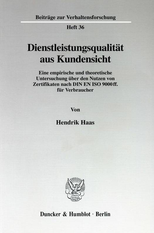 Seit einiger Zeit finden nun auch im Dienstleistungsbereich Zertifikate über Qualitätsmanagementsysteme nach ISO 9000 Verbreitung - können sie evtl. Abhilfe schaffen? Viele der zertifizierten Unternehmen versuchen ihren Kunden gegenüber in werblichen Aussagen diesen Eindruck zu erwecken; ob ein solcher Anspruch tatsächlich gerechtfertigt ist, wird in diesem Buch sowohl auf empirischem als auch auf theoretischem Wege überprüft. In der empirischen Untersuchung wird die Dienstleistungsqualität zertifizierter und entsprechender, nicht zertifizierter Unternehmen gemessen und verglichen. Die theoretische Analyse besteht in einer Bewertung der Normenreihe ISO 9000 vor dem Hintergrund des aktuellen Standes der Qualitätswissenschaft.