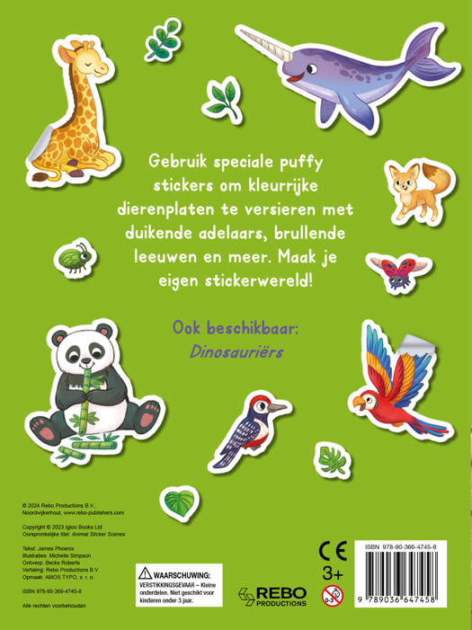 Gebruik speciale puffy stickers om kleurrijke dierenplaten te versieren met duikende adelaars, brullende leeuwen en meer. Maak je eigen stickerwereld!