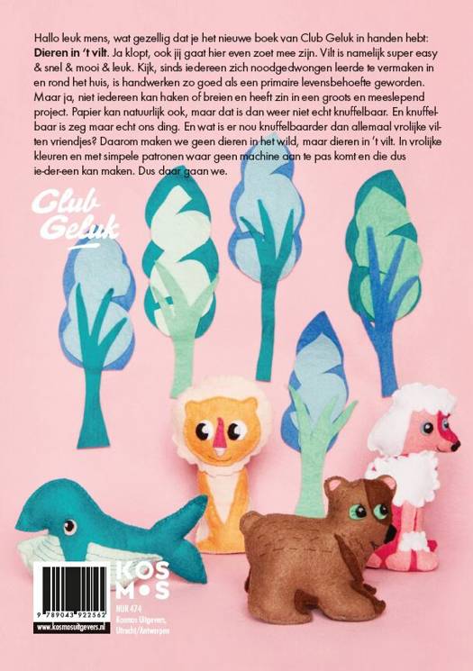 Voor ‘Dieren in het vilt’ heeft Marieke Voorsluijs vijfentwintig prachtige naaipatronen voor knuffeldieren ontworpen. Werken met vilt is leuk, makkelijk en goedkoop! Vilt is overal eenvoudig verkrijgbaar en je hebt geen dure apparaten nodig om ermee te werken. Een naaldje en een schaar – that’s it. Marieke Voorsluijs bedacht alle knuffels zelf en creëerde een schattige mix van retro- en kawaiidieren! Maak de hele vilten dierenfamilie!