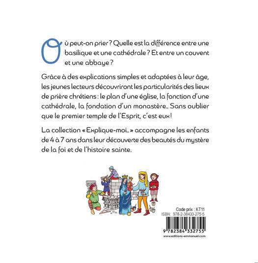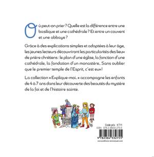 Où peut-on prier ? Quelle est la différence entre une basilique et une cathédrale ? Et entre un couvent et une abbaye ? Grâce à des explications simples et adaptées à leur âge, les jeunes lecteurs découvriront les particularités des lieux de prière chrétiens : le plan d’une église, la fonction d’une cathédrale, lafondation d’un monastère… Sans oublier que le premier temple de l’Esprit, c’est eux ! La collection « Explique-moi… » accompagne les enfants de 4 à 7 ans dans leur découverte des beautés du mystère de la foi et de l’histoire sainte.