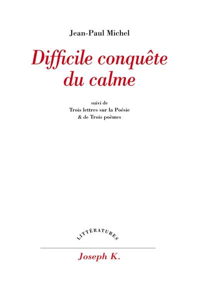 “D'un livre seul, on peut tout attendre. Il vaut à proportion du pari désespéré qui le porte, des richesses qu'il jette, avec joie, dans son feu, pour qu'il flambe. Rien ne l'excuse, puisqu'on y doit tout choisir. Que l'on y doive répondre de «tout» fait devoir, pousse à devenir meilleur. On y lutte avec les Puissances, c'est assez dire les chances de perdre. Cela vaut déjà mieux, pourtant, que la plupart des «succès» du monde: méditer un assaut souverain, désintéressé, pur de toute bassesse, étranger à la cautèle ordinaire des intentions, vraiment voué au vrai jusqu'à se perdre.” Jean-Paul Michel érige en art de vivre l'art d'écrire. Dans un manuel à l'antique, il précise sa règle en préceptes courts; il dit ses fatigues et ses éblouissements avant que de nous offrir le Poème, comme un chant, un don suprême, une chance.