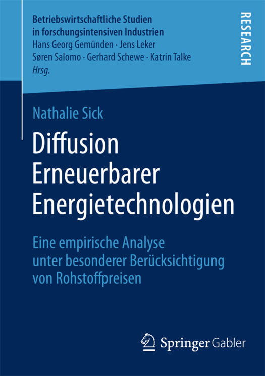 Die Energiewende, der industrieübergreifende Rohstoffwandel von fossilen zu nachwachsenden Rohstoffen und die aktuellen Entwicklungen an den Rohstoffmärkten geben Anlass, Rohstoffpreise als marktbasierte Einflussfaktoren auf die Diffusion Erneuerbarer Energietechnologien zu untersuchen. Im Rahmen einer multivariaten Regressionsanalyse analysiert Nathalie Sick den Effekt von Rohstoffpreisen im Zusammenspiel mit weiteren Faktoren auf die Diffusion von Biomasse und Geothermie sowie Biokraftstoffen, Solarenergie und Windkraft. Über theoretische Implikationen für die Forschung im Bereich der Technologiediffusion hinaus, leitet die Autorin Handlungsempfehlungen für politische Institutionen sowie Energieunternehmen und Investoren ab.