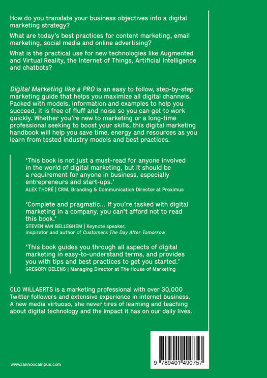 How do you translate your business objectives into a digital marketing strategy? What are today's best practices for content marketing, email marketing, social media and online advertising? What is the practical use for new technologies like Augmented and Virtual Reality, the Internet of Things, Artificial Intelligence and chatbots? Digital Marketing like a PRO is an easy to follow, step-by-step marketing guide that helps you maximize all digital channels. Packed with models, information and examples to help you succeed, it is free of fluff and noise so you can get to work quickly. Whether you're new to marketing or a long-time professional seeking to boost your skills, this digital marketing handbook will help you save time, energy and resources as you learn from tested industry models and best practices.