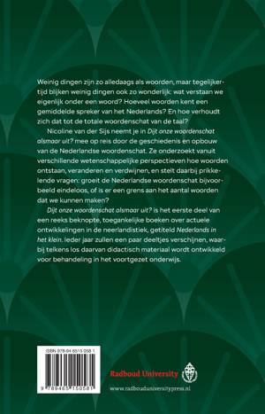 Nicoline van der Sijs neemt je in Dijt onze woordenschat alsmaar uit? mee op reis door de geschiedenis en opbouw van de Nederlandse woordenschat. Ze onderzoekt vanuit verschillende wetenschappelijke perspectieven hoe woorden ontstaan, veranderen en verdwijnen, en stelt daarbij prikkelende vragen: groeit de Nederlandse woordenschat bijvoorbeeld eindeloos, of is er een grens aan het aantal woorden dat we kunnen maken?