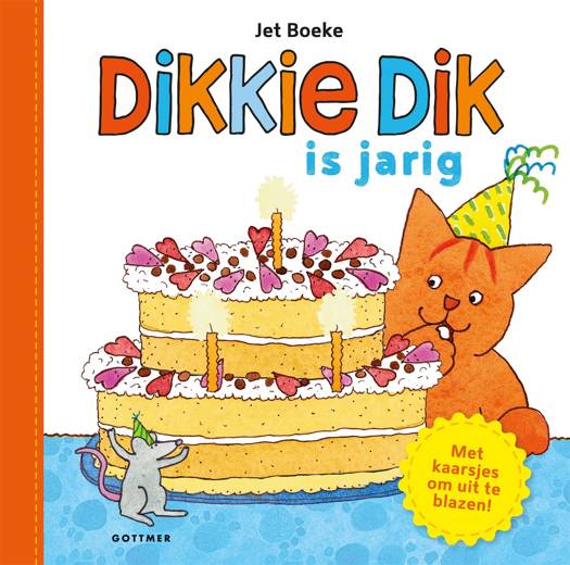 'Dikkie Dik is jarig' is een heel bijzonder en stevig prentenboek met een verjaardagstaart met drie kaarsjes om echt uit te blazen. En Dikkie Dik wil dan ook niets liever dan die kaarsjes uitblazen en de taart oppeuzelen, maar er moet nog een hoop gebeuren voor het poezenfeestje kan beginnen: de slingers moeten worden opgehangen, alle poezenvrienden moeten nog arriveren... Zou Dikkie Dik zo lang kunnen wachten?