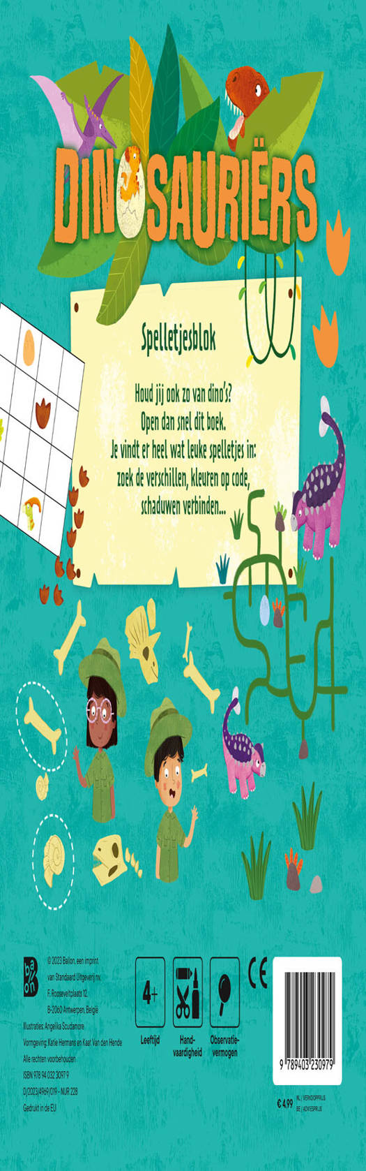 Houd jij ook zo van dino’s? Open dan snel dit boek. Je vindt er heel wat leuke spelletjes in: zoek de verschillen, kleuren op code, schaduwen verbinden… Voor wie maar niet genoeg kan krijgen van dinosaurussen. Veel plezier!