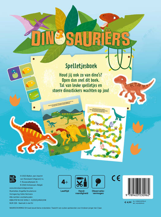 Houd jij ook zo van dino’s?Open dan snel dit boek. Tal van leuke spelletjes en meer dan 75 stoere dinostickers wachten op jou!Voor wie maar niet genoeg kan krijgen van dinosauriërs.Veel kleurplezier!