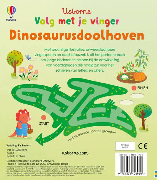 Help babystegosaurus door het moeras en leid de triceratops door een dinodoolhof door met je vingers de sporen op de bladzijden te volgen. Een fijn puzzelboekje voor jonge kinderen met negen eenvoudige, lief getekende doolhoven. Doolhoven zijn een prima manier voor kinderen om te helpen bij de ontwikkeling van cognitieve vaardigheden, het richtingsgevoel en de fijne motoriek.
