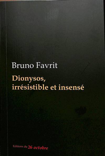 Empruntant à la comédie antique, l'auteur dresse le portrait du dieu le plus singulier de la mythologie. Au panthéon des immortels, Dionysos est sans doute la figure la plus proche de la condition humaine, mais il se révèle aussi insaisissable, incompris, autant irrésistible qu'insensé. Il frappe de folie ceux qui le rejettent. Sa morale va à l'encontre de tout ce qui emprisonne. Il est le personnage d'une pièce tragique qui se débat parmi les hommes et leur enseigne la transe, la confusion, la libation et la libération. Une singularité, mais surtout une offense dans un monde utilitariste où le commandement et l'interdit voudraient être la règle.