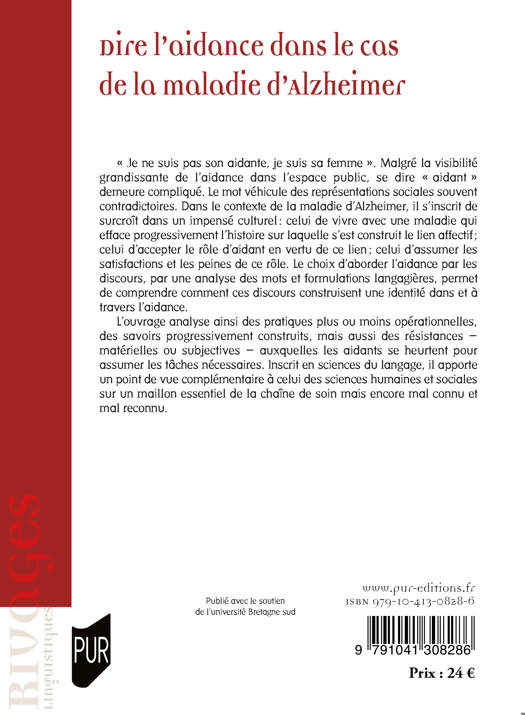 « Je ne suis pas son aidante, je suis sa femme ». Malgré la visibilité grandissante de l’aidance dans l’espace public, se dire « aidant » demeure compliqué. Le mot véhicule des représentations sociales souvent contradictoires. Dans le contexte de la maladie d’Alzheimer, il s’inscrit de surcroît dans un impensé culturel : celui de vivre avec une maladie qui efface progressivement l’histoire sur laquelle s’est construit le lien affectif ; celui d’accepter le rôle d’aidant en vertu de ce lien ; celui d’assumer les satisfactions et les peines de ce rôle. Le choix d’aborder l’aidance par les discours, par une analyse des mots et formulations langagières, permet de comprendre comment ces discours construisent une identité dans et à travers l’aidance. L’ouvrage analyse ainsi des pratiques plus ou moins opérationnelles, des savoirs progressivement construits, mais aussi des résistances – matérielles ou subjectives – auxquelles les aidants se heurtent pour assumer les tâches nécessaires. Inscrit en sciences du langage, il apporte un point de vue complémentaire à celui des sciences humaines et sociales sur un maillon essentiel de la chaîne de soin mais encore mal connu et mal reconnu.