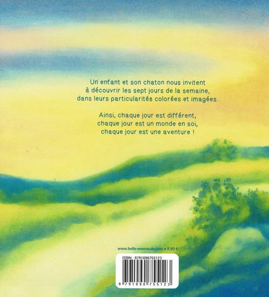Un enfant et son chaton nous invitent à découvrir les sept jours de la semaine, dans leurs particularités colorées et imagées. Ainsi, chaque jour est différent, chaque jour est un monde en soi, chaque jour est une aventure !