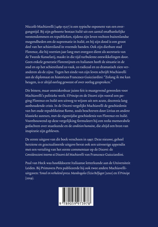 Paul van Heck was hoofddocent Italiaanse letterkunde aan de Universiteit Leiden. Bij Primavera Pers publiceerde hij ook twee andere Machiavelli-uitgaven: Toneel en verhalend proza. Mandragola Clizia Belfagor (2010) en Il Principe (2019).