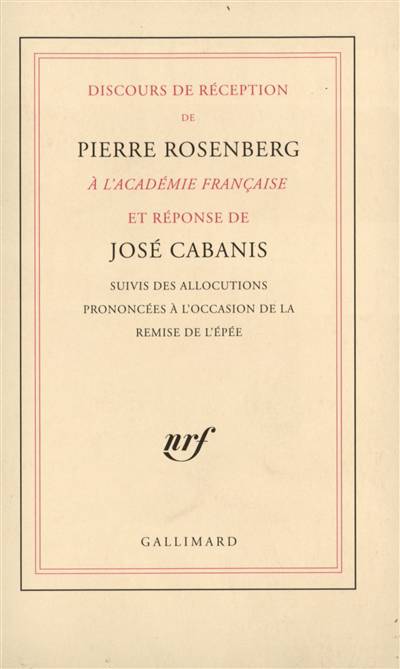 M. Pierre Rosenberg a été élu à l'Académie française à la place laissée vacante par la mort de M. Henri Gouhier. Ce discours a été prononcé à l'occasion de sa prise de séance le jeudi 14 novembre 1996. Après la réponse de José Cabanis, les allocutions prononcées à l'occasion de la remise de l'épée l'ont été par Hélène Carrère d'Encausse, Jacques Thuillier, Michel Laclotte et, in fine, Pierre Rosenberg.