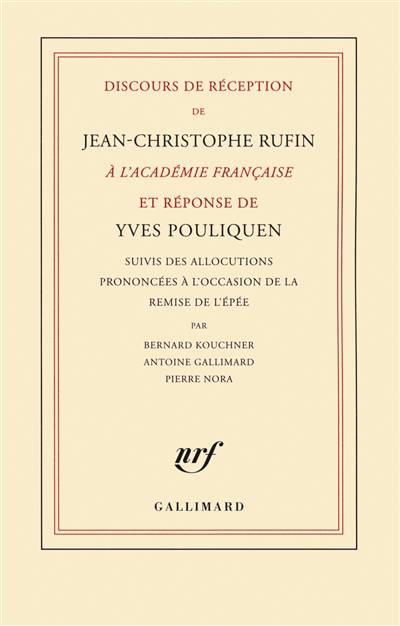 Dans ce discours prononcé le 12 novembre 2009 lors de sa réception à l'Académie française, J.-C. Rufin fait l'éloge de son prédécesseur, H. Troyat. Son confrère Y. Pouliquen propose en réponse une allocution présentant l’œuvre et le parcours du nouvel élu