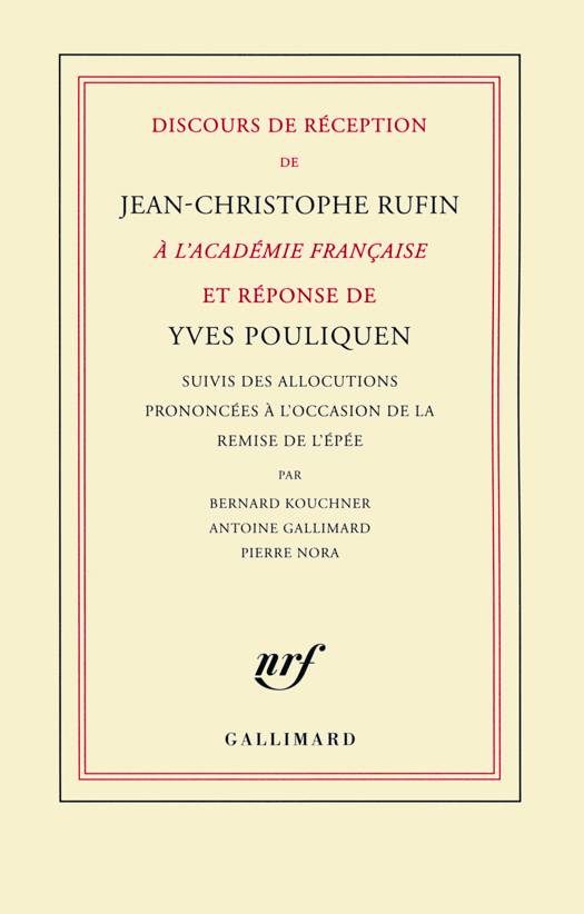 Dans ce discours prononcé le 12 novembre 2009 lors de sa réception à l'Académie française, J.-C. Rufin fait l'éloge de son prédécesseur, H. Troyat. Son confrère Y. Pouliquen propose en réponse une allocution présentant l’œuvre et le parcours du nouvel élu