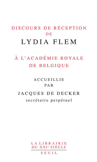 Discours de réception de Lydia Flem à l'Académie royale de Belgique accueillie par Jacques De Decker