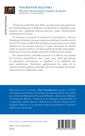 À l'aube du jeudi 24 février 2022, une allocution choc prononcée par Vladimir Poutine est diffusée à la télévision. Le président russe annonce une opération militaire spéciale pour démilitariser et dénazifier l'Ukraine . Un homme va incarner la résistance à l'envahisseur: l'acteur Volodymyr Zelensky, élu sans expérience politique ni militaire à la tête de l'Ukraine en 2019. Par ses discours percutants et ses vidéos relayées sur les réseaux sociaux, il capte l'attention du monde entier. La guerre révèle en lui des qualités de leader inattendues: il parvient à unir son peuple autour de la défense de la nation. Ses interventions, véritables hymnes à la liberté, ont parfois des accents churchilliens. Jour après jour, elles galvanisent la population ukrainienne et appellent à la solidarité des pays occidentaux. Maîtrisant parfaitement les codes de la communication moderne, Zelensky devient le symbole du combat ukrainien face à l'agression russe.