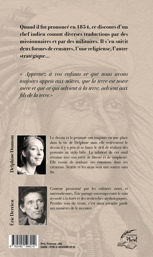 Quand on s’intéresse au sujet, on sait que le chef Si’ahl a prononcé un discours en 1854 devant le gouverneur envoyé par le président des États-Unis et que la ville de Seattle doit son nom à ce chef amérindien. Il n’a pas été « enregistré » ou transcrit au moment même et plusieurs interprétations ont été faites à des moments différents pour des raisons différentes. Isabelle Marrier, dans son livre « Le discours sans fin (ou comment le chef Seattle n’a pas dit ce qu’on dit qu’il avait dit) », nous en retrace remarquablement toute l’histoire. Le discours du chef Seattle, qu’il soit vrai ou légende, nous met devant nos contradictions et nous oblige à réfléchir à la relation que nous avons avec la terre. Cette terre, c’est un globe terrestre, des champs qu’on ensemence, des paysages qu’on contemple, un territoire convoité, un sous-sol exploité, des forêts, des montagnes, des plaines, un jardin, un pays, un lieu où on naît, un où on vit et un où on meurt. Cette terre existe au-delà de l’homme et nous renvoie à notre non-immortalité. La préserver, même la choyer, pour les générations futures ou à la mémoire de nos ancêtres, devrait être notre priorité… et pourtant !