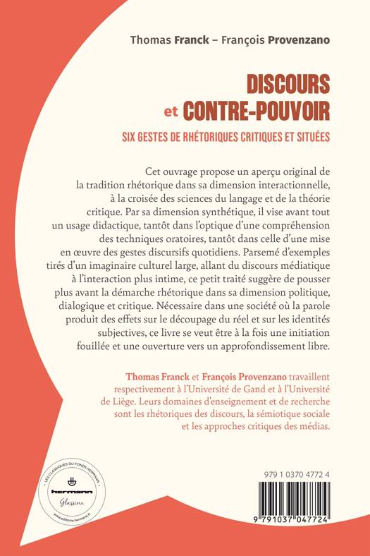 Cet ouvrage propose un aperçu original de la tradition rhétorique dans sa dimension interactionnelle, à la croisée des sciences du langage et de la théorie critique. Par sa dimension synthétique, il vise avant tout un usage didactique, tantôt dans l’optique d’une compréhension des techniques oratoires, tantôt dans celle d’une mise en œuvre des gestes discursifs quotidiens. Parsemé d’exemples tirés d’un imaginaire culturel large, allant du discours médiatique à l’interaction plus intime, ce petit traité suggère de pousser plus avant la démarche rhétorique dans sa dimension politique, dialogique et critique. Nécessaire dans une société où la parole produit des effets sur le découpage du réel et sur les identités subjectives, ce livre se veut être à la fois une initiation fouillée et une ouverture vers un approfondissement libre.