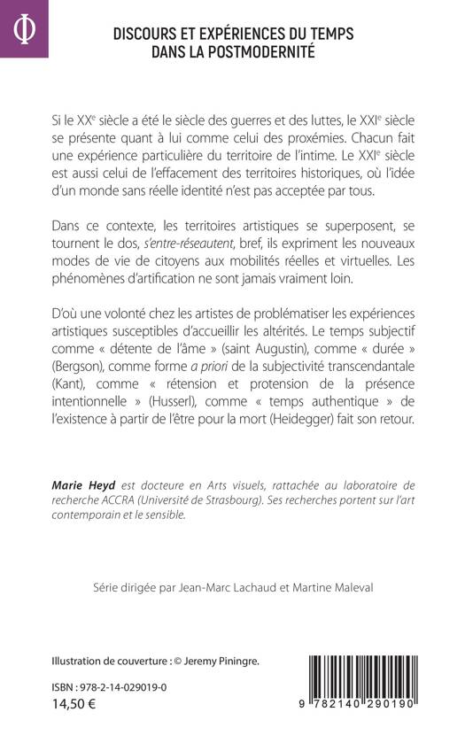 Si le XXe siècle a été le siècle des guerres et des luttes, le XXIe siècle se présente quant à lui comme celui des proxémies. Chacun fait une expérience particulière du territoire de l'intime. Le XXIe siècle est aussi celui de l'effacement des territoires historiques, où l'idée d'un monde sans réelle identité n'est pas acceptée par tous. Dans ce contexte, les territoires artistiques se superposent, se tournent le dos, s'entre-réseautent, bref, ils expriment les nouveaux modes de vie de citoyens aux mobilités réelles et virtuelles. Les phénomènes d'artification ne sont jamais vraiment loin. D'où une volonté chez les artistes de problématiser les expériences artistiques susceptibles d'accueillir les altérités. Le temps subjectif comme détente de l'âme (saint Augustin), comme durée (Bergson), comme forme a priori de la subjectivité transcendantale (Kant), comme rétension et protension de la présence intentionnelle (Husserl), comme temps authentique de l'existence à partir de l'être pour la mort (Heidegger) fait son retour.