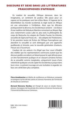 En matière de sexualité, l'Afrique demeure, dans les imaginaires, un continent de pudeur. Elle passe pour un espace où les pratiques sont loin d'être libres. Si les premiers textes de fiction de l'Afrique francophone qui abordent la sexualité se sont distingués par une approche pudibonde et timorée, avec la nouvelle génération d'auteurs, l'heure est à l'ouverture. L'audace de ces auteurs n'a d'égal que leur souci d'établir des réalités que les représentations communes autant que les discours publics occultent. Cet ouvrage est une invitation à regarder en face une vérité bien plus complexe.