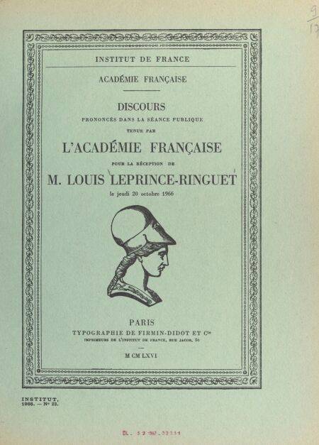 3. Discours pour la réception de M. Louis Leprince-Ringuet, le jeudi 20 octobre 1966