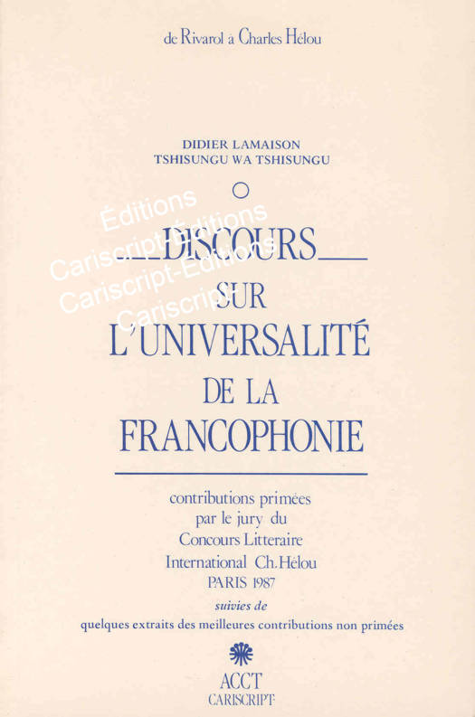 L'institution, très controversée, des Prix littéraires a pris aujourd'hui la palce qu'occupaient, dans la vie intellectuelle du XVIIIe siècle, les Concours littéraires, où des candidats souvent promis à la gloire s'expliquaient loyalement sur un sujet imposé. Pour en célébrer l'un des plus renommés, celui qui, il y a deux siècles exactement, avait révélé Rivarol pour son Discours sur l'Universalité de Langue française, l'idée est venue à Charles Hélou, Homme d'état, humaniste et pionnier de la Francophonie, de mettre au concours dans les mêmes conditions qu'au XVIIIe siècle, une question sur la légitimité des ambitions universelles de la Francophonie. L'Agence de Coopération Culturelle et Technique, organisation intergouvernementale où se trouvent la quasi-totalité des pays ayant en commun l'usage du français l'a adopté avec enthousiasme et a organisé le Concours. De tous les coins du monde, y compris de pays non francophones, quatre-vingts contributions sont parvenues au Jury que présidait Charles Hélou et qui groupait d'illustres personnalité des mondes des lettres, des arts et de la politique, dont L.S. Senghor, de l'Académie française. Ce livre donne les textes des deux lauréats, suivis de quelques extraits des meilleures contributions non primées. Les lauréats d'aujourd'hui suivront-ils les traces des Rousseau et Rivarol qui les ont précédés sur la voie de pareils honneurs? (4e de couverture)