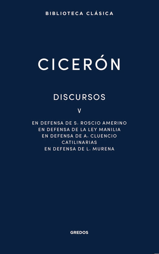 De entre los discursos de Marco Tulio Cicerón, algunos de los reunidos en este volumen se cuentan entre los más sobresalientes. Aquí encontramos el celebérrimo grupo de las Catilinarias, que tienen un extraordinario valor político, por el contexto grave en que se pronunciaron, y sobre todo un valor literario sin parangón en la prosa latina. También se encuentra su defensa a Sexto Roscio Amerino, la primera causa importante que le dio fama, así como su famoso alegato a favor de la ley Manilia y de Pompeyo, o la defensa de Lucio Murena, en un momento de crisis de la Republica tras la conjuración de Catilina.Publicado originalmente en la BCG con el número 211, este volumen presenta las traducciones de En defensa de S. Roscio Amerino, En defensa de la ley Manilia, En defensa de A. Cluencio, Catilinarias y En defensa de L. Murena realizadas por Jesús Aspa Cereza.