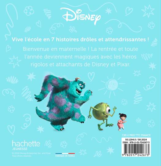 Contient les histoires :Mickey et ses amis, La rentrée des classes ; Monstres et Compagnie, Les vacances de Bouh ; La Reine des Neiges, La collection d’Olaf ; Lilo et Stitch, Stitch à l’école ; Toy Story 3, L’histoire du film ; La Belle et la Bête, Petite Belle aime les livres ; Vice-Versa, Riley et le Bing Bond Band.