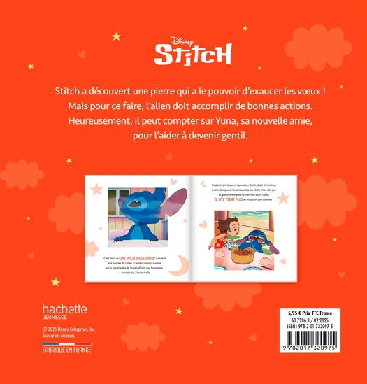 L'histoire :Stitch a découvert une pierre qui a le pouvoir d’exaucer les vœux ! Mais pour ce faire, l’alien doit accomplir de bonnes actions. Heureusement, il peut compter sur Yuna, sa nouvelle amie, pour l’aider à devenir gentil.