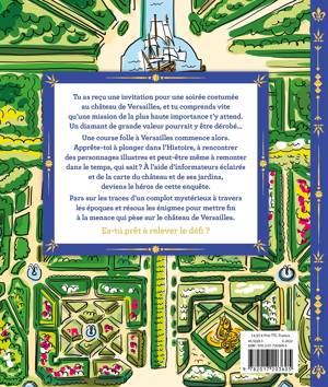 Le vol du grand diamant bleu de Louis XIV plonge le lecteur dans un incroyable voyage dans le temps à l'époque du Roi-Soleil. Un livre-jeu avec une histoire interactive découpée en 5 grands chapitres : l'enfant doit mener une enquête grâce aux indices, jeux et codes secrets à déchiffrer. À la fin de chaque chapitre, le lecteur doit résoudre une partie de l'enquête. Il pourra s'aider d'un plan détaillé du Château de Versailles et de ses jardins.