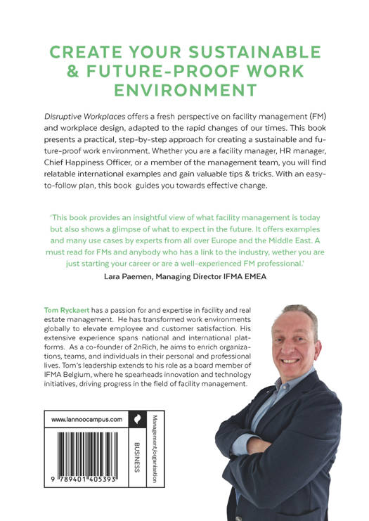 Not so much about the workplace being disrupted, but rather the rapid pace at which disruptions have come upon us has impacted how facility management and the workplace are perceived. This step-by-step approach will help companies create a sustainable and future-proof work environment, whether looking at this from the perspective of a Facility Manager, FM Service Provider, HR Manager, Chief Happiness Officer, or part of the management team. Everyone will be able to identify with the different international use cases and extract the necessary tips & tricks. And, of course, providing a simple step-by-step model for practical implementation.