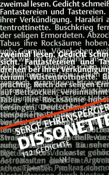 Die neuen Gedichte aus dem Orkus der Gegenwart, die im zweiten Sonettband von Serge Ehrensperger erscheinen, heißen Dissonette. Wieder sprengt eine zusätzliche Zeile das traditionelle Sonett, und der Reim wird durch Wort- und Begriffswindungen ersetzt. Assonanzen und Dissonanzen stehen der heutigen Auflösung kultureller Regeln und Formen konsterniert entgegen und nehmen sie auf durch ihre neuartige und zeittypische Sprachmusik. Die letzten Jahre, von der privaten Idylle bis zum verspiegelten Weltereignis erklingen darin, rückwärts aufgereiht über das Ultimatum an den Irak bis zum geklonten Schaf Dolly.