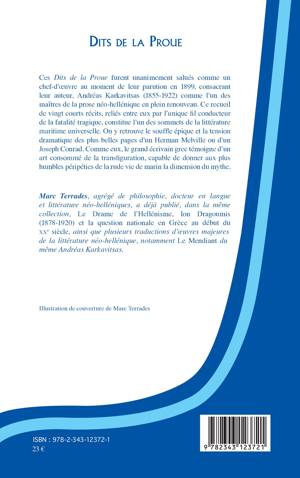 Ces Dits de la Proue furent unanimement salués comme un chef-d'uvre au moment de leur parution en 1899, consacrant Andréas Karkavitsas comme l'un des maîtres de la prose néo-hellénique. Ce recueil de vingt courts récits, reliés entre eux par le fil conducteur de la fatalité tragique, constitue l'un des sommets de la littérature maritime universelle. On y retrouve le souffle épique et la tension dramatique d'un Melville ou d'un Conrad. Comme eux, le grand écrivain grec donne aux plus humbles péripéties de la rude vie de marin la dimension du mythe.