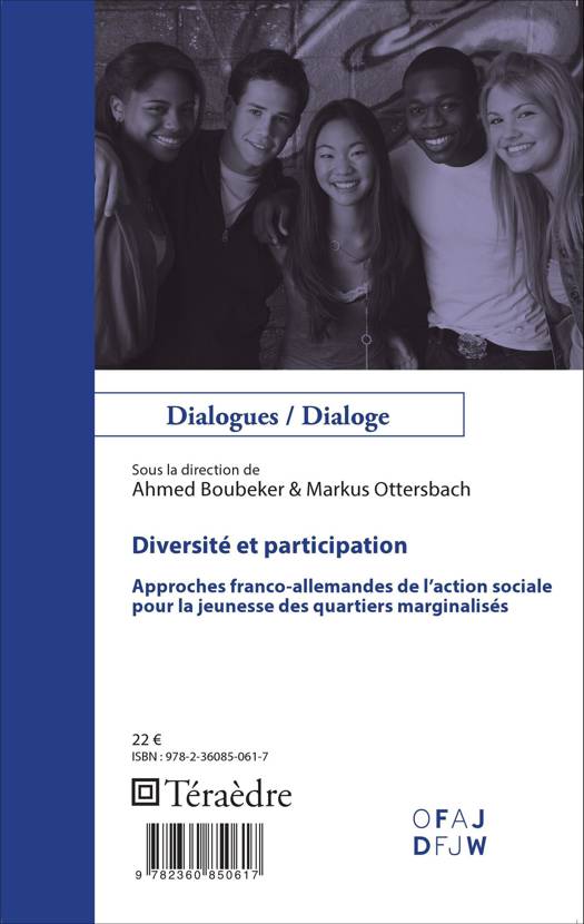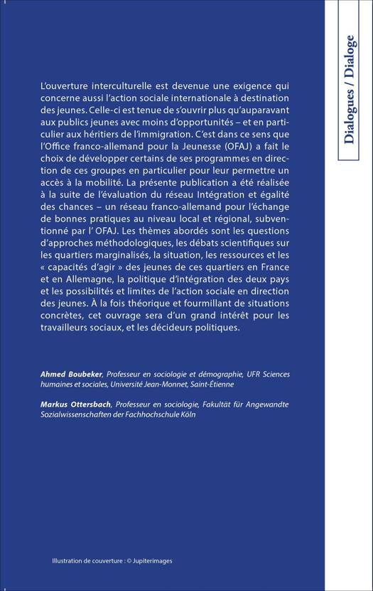 L'ouverture interculturelle est devenue une exigence qui concerne aussi l'action sociale internationale à destination des jeunes. Cet ouvrage aborde la méthodologie, les débats scientifiques sur les quartiers marginalisés, les ressources et les "capacités d'agir" de ces jeunes, la politique d'intégration et les possibilités et limites de l'action sociale en France et en Allemagne. À la fois théorique et fourmillant de situations concrètes, cet ouvrage intéressera les travailleurs sociaux et les décideurs politiques.