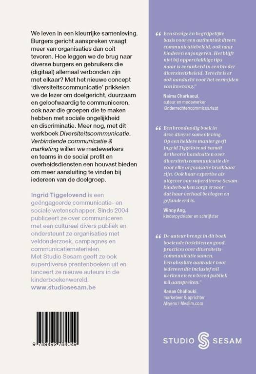 Een onderzoek bij 303 communicatiemedewerkers door Arteveldehogeschool,gesprekken met experten, de expertise van communicatiemedewerkers, literatuuronderzoek, de actualiteit en de ervaringen van de auteur kruiden het boek Diversiteitscommunicatie. Verbindende communicatie & marketing. Het begrip diversiteitscommunicatie introduceert een manier van werken om doelgericht, duurzaam en geloofwaardig te communiceren naar iedereen van de diverse doelgroep. HOOFDSTUK 1 Samen met de auteur neem je een duik in de kleurrijke samenleving met<br>actuele cijfers en tendensen. Ook de opkomst van nieuwe stemmen, het kruispuntdenken en de dekolonisatiebeweging passeren de revue. HOOFDSTUK 2 Slagen communicatiemedewerkers erin om iedereen te bereiken en aan<br>te spreken? Het communicatieonderzoek en de eigen ervaringen van communicatiemedewerkers komen aan bod. HOOFDSTUK 3 Wat is nu diversiteitscommunicatie? Stap per stap wordt het begrip uitgelegd, als ook etno- en moslimmarketing. HOOFDSTUK 4 Diversiteitscommunicatie heeft een vruchtbare bodem nodig: een diversiteitsbeleid dat door iedereen uitgedragen én beoordeeld wordt. HOOFDSTUK 5 Connectie maken met de doelgroep kan enkel maar als je je oor te luisteren legt. Met veldonderzoek kan men het eigen referentiekader overstijgen. HOOFDSTUK 6 Het communicatieplan, scherpe communicatiedoelen maar ook het gedragsvraagstuk komen in beeld, net zoals de leesvaardigheden en de digitale en visuele geletterdheid van de doelgroep. HOOFDSTUK 7 Twaalf tips worden helder uitgelegd en geïllustreerd met als doel om geloofwaardig en duurzaam te communiceren naar de doelgroep. EEN BOEK MET DAADKRACHT!