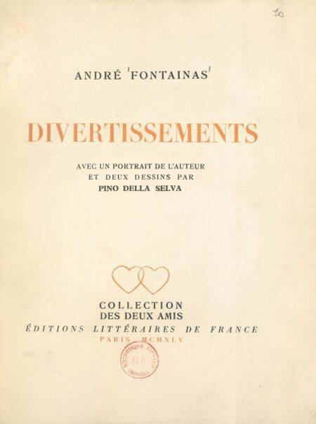 Petits poèmes sibyllins offerts à la mémoire de Gérard de Nerval, hommages, dizains et sonnets, accompagnés d'un portrait de l'auteur et de deux dessins de Pino Della Selva, composent ce recueil d'André Fontainas, paru en 1945 dans la Collection des Deux Amis.