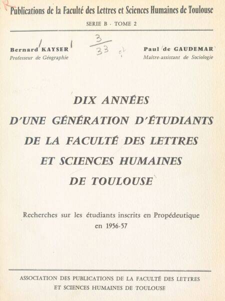 Dix années d'une génération d'étudiants de la Faculté des lettres et sciences humaines de Toulouse E-BOOK