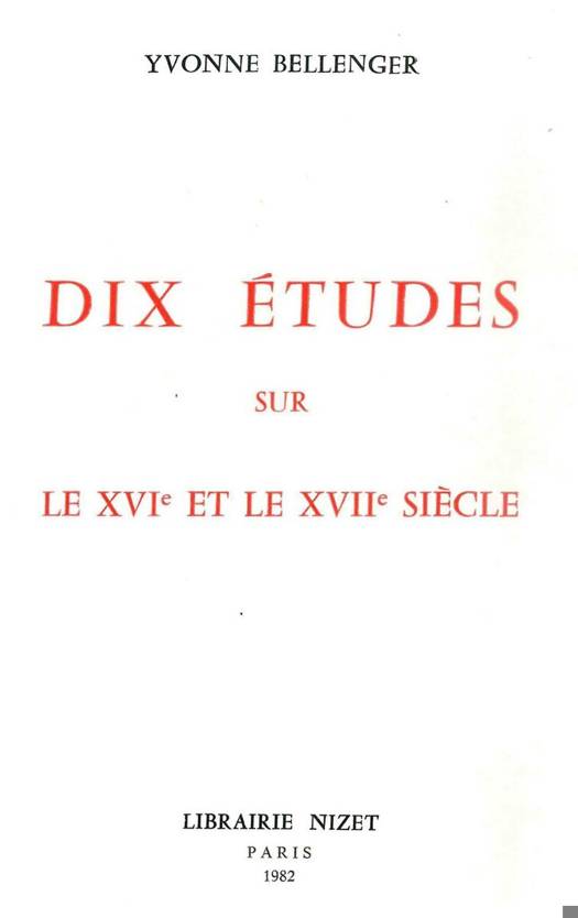 Ces dix etudes sur la poesie des XVIe et XVIIe siecles francais, publiees isolement dans diverses revues, sont ici regroupees en quatre thematiques: les "mots et les tours" (sur quelques tournures langagieres), "des jours" (deroulement d'une journee a l'epoque et sa representation dans les poemes), "des lieux" (expressions du moment et du paysage chez Ronsard ou Du Bartas), enfin "de l'amour" (a travers l'Olive de Du Bellay et la tradition de la poesie obscene)