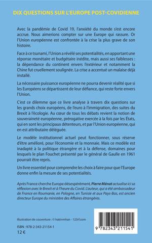 Avec la pandémie de Covid 19, nous aimerions compter sur une Europe qui rassure. Or l'Union européenne est confrontée à la crise la plus grave de son histoire. Face à ce tsunami, l'Union a révélé ses potentialités, en apportant une réponse monétaire et budgétaire inédite, mais aussi ses faiblesses : sa dépendance envers l'extérieur et notamment la Chine. La crise a accentué le malaise. La puissance européenne ne pourra devenir réalité que si les Européens se départissent de leur défiance. Ce dilemme est analysé à travers dix questions sur les grands choix européens, de l'euro à l'immigration, du Brexit à l'écologie. Au coeur des débats revient la notion de souveraineté européenne. Inadapté à la politique étrangère et à la défense, notre modèle doit être amélioré.